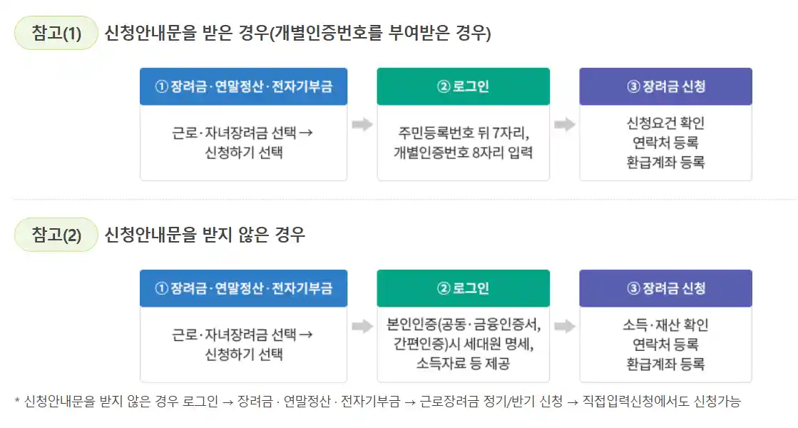 - 신청안내 대상자가 장려금 신청기간에 자동신청에 사전 동의하면 향후 2년간 안내대상에 선정될 경우 장려금이 자동으로 신청됩니다.